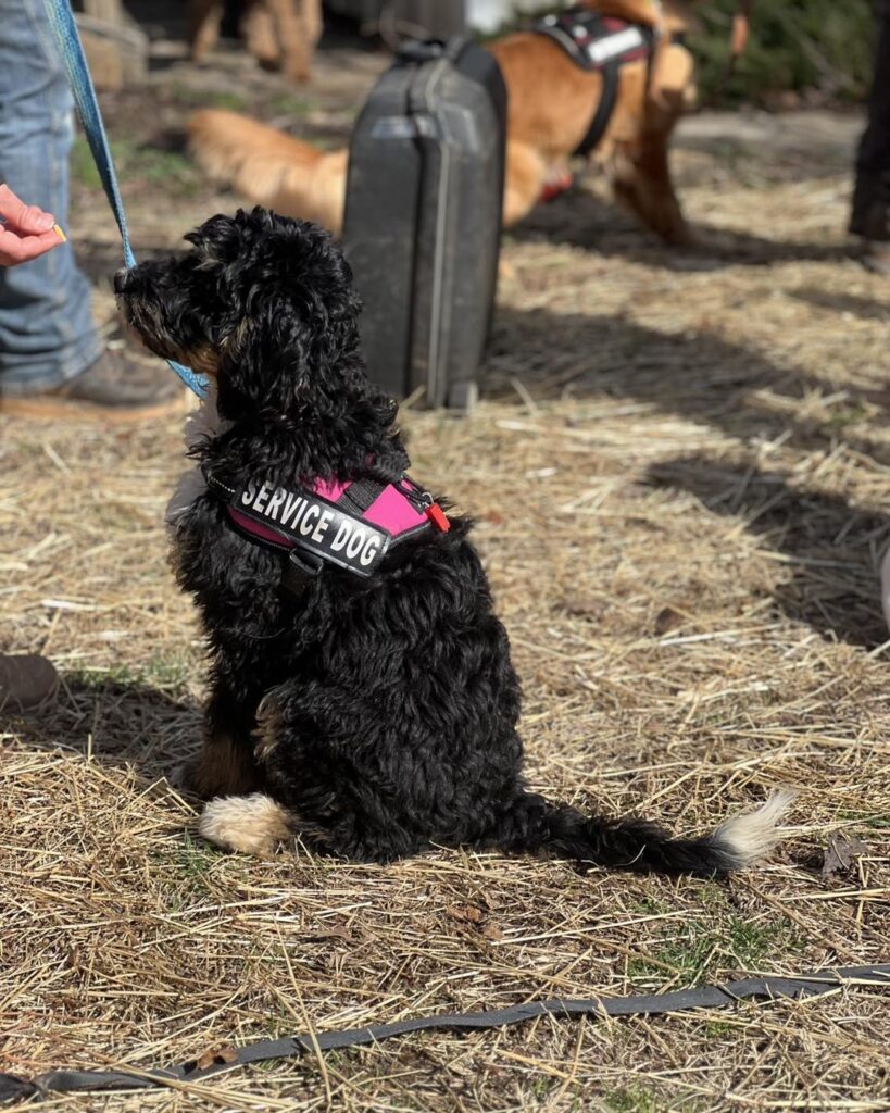 Service dogs are specifically trained to perform a specific task to directly aid a person with a disability, such as a dog who can guide a blind person, a seizure alert task to seek help when their person is not able to, retrieving items that have been dropped, opening doors, or even assisting individuals with autism. There are a variety of tasks a service dog can learn to help their person through their daily lives.